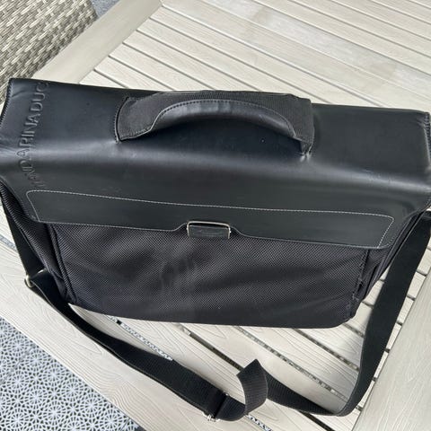 Lommer i siden. Lynlås lomme bagpå og mange indvendige rum. Som ny