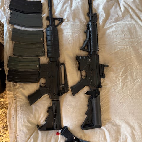 Våpen nr. 1: Ma16 ebb G&G TopTech, så med elektronisk blowback og ekstra mag + batteri + ekstra tilbehør, alt på billedet.