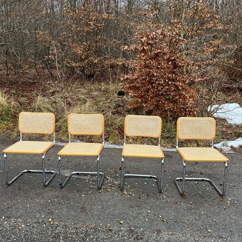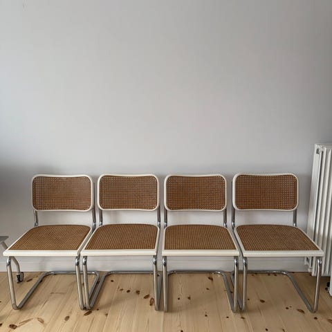 4 stk. se billeder ift brugsspor. 3 af stolene af super fine. Der er en af stolene hvor flettet er løst og gået lidt fra, stolen kan dog sagtens bruges.