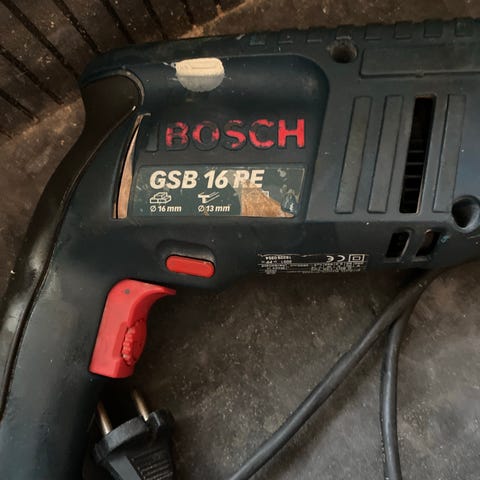Bosch PSB 500 RE boremaskine med kablet strømforsyning. Maskinen har et kompakt design med grøn og sort farve samt rød tænd/sluk-knap. Egnet til boreopgaver i forskellige materialer.