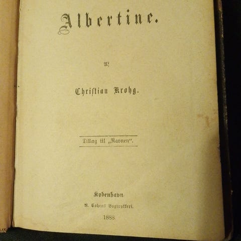 Copenhagen, Ernst Bojesens Kunstforlag 1879. A very rare Danish text, only the second book published using a photomechanical process. Seven pp incl. title page printed only on recto, with text integral to the collotype illustrations. Each page describes an element in the girl’s life, from getting up to going to bed. Original covers with spine partially split and printed faded. Otherwise in very good condition throughout, though a little marking on title page.