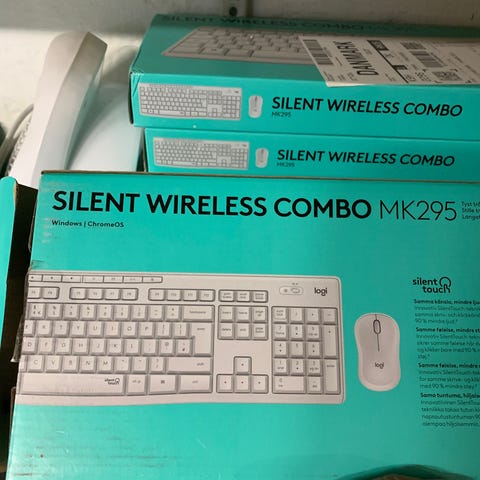 Sælger 11 sæt af disse keyboard + mus (sæt) Da vi har fået nogle andre. De er gemt i de æsker de nye er kommet i så derfor opbevaret godt. DOG er det altså Logitech MK470 Slim som er i dem med musen også. (se billeder)