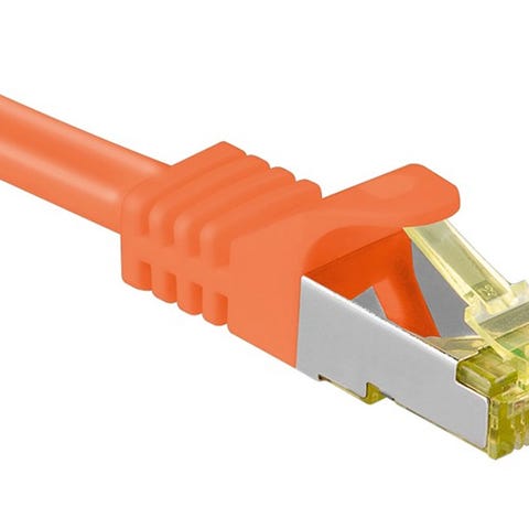 PRIS-MATCH! CAT 7 S-FTP Netværkskabel | Orange | Orange CAT 7 S/FTP skærmet netværkskabel med kvalitets kobberleder og CAT6A stik, til højhastigheds netværksforbindelser, TV boks eller andet IT udstyr.