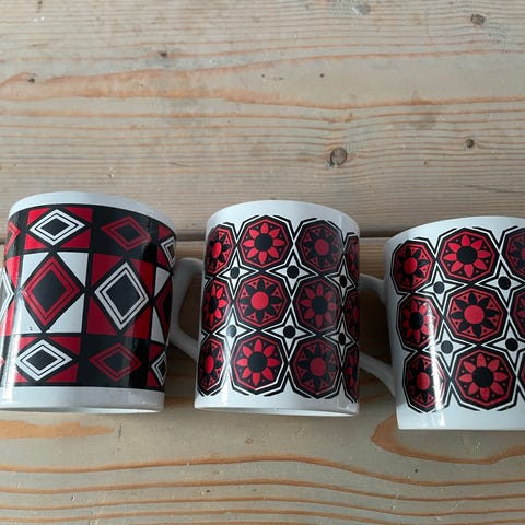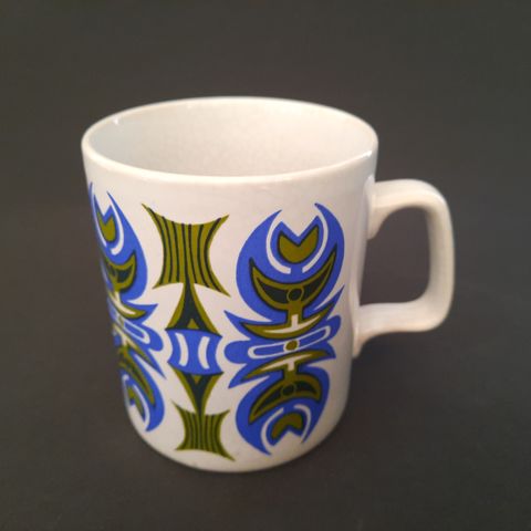 Staffordshire "Chianti" kaffe/te krus med dekorative motiver af frugt og blomster i flere farver. Kruset er i meget flot brugt stand. Ingen skår, afslag eller krakeleringer.