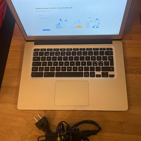 Fungerer fantastisk, holder en opladning i 12 timer mens du ser YouTube, oplader medfølger.