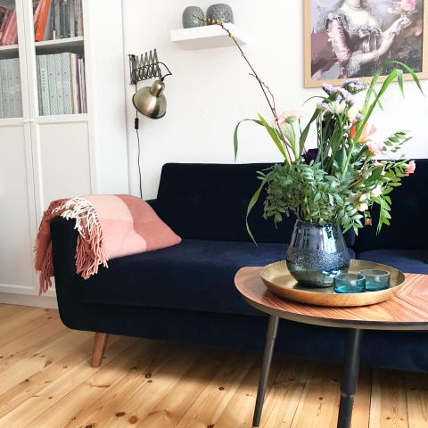 Sofacompany Conrad i mørkeblå velour. Pæn stand.