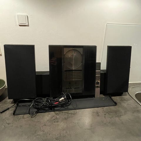 Bang & Olufsen BeoSound Ouverture stereopakke med CD afspiller, laser lensen skal renses, kassettebånd mangler remme, alt det andet virker. Enheden har et unikt design med glas og metaldetaljer. Tilslutningsmuligheder omfatter flere stik til lydindgang og strøm. Produktet er velegnet til brug i hjemmet til afspilning af musik fra forskellige kilder. Prisen 1000 kr