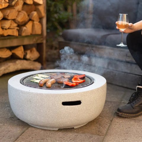 Med denne stramt designede vuurschaal af magnesiumoxid får haven en stemningsfuld tilføjelse.