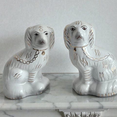 Beswick Staffordshire par porcelænsdyr i håndmalet med gyldne detaljer, i Victorian Revival / Traditional English stil, hver ca. 15 cm høj, 11 cm bred og 1 cm dyb, ca. 305 g vægt, underskrevet med original Beswick-klistermærke og indgraveret “England” på bunden, edition 1378-6, oprindelse fra Storbritannien, i meget god vintagestil. Klik på den blå "gå til varen" knap, for at købe eller byde på denne vare. Den samlede pris vil blive vist inden du afgiver dit bud.