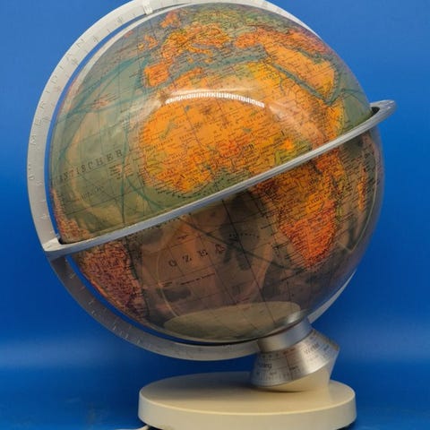 Mappemonde eller jordglob i pap med plastfod på 18x18 - Skala 1:37.500.000 - År 1960 - Forsendelse via Bpost med tracking - se billeder