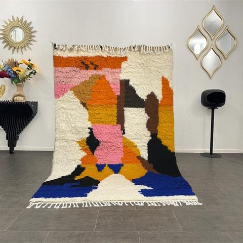 Introducer et tidløst stykke af elegance i dit opholdsrum med vores moderne hvide marokkanske Beni Ourain uldteppe. Dette tæppe er ikke blot en gulvbelægning; det er et statement-piece, der indkapsler den rige tradition og håndværk fra Berber-kunstnere fra Atlasbjergene i Marokko. Med et rent og minimalistisk geometrisk mønster er dette tæppe den perfekte blanding af traditionelle teknikker og moderne design, hvilket gør det til et alsidigt supplement til enhver indretning.