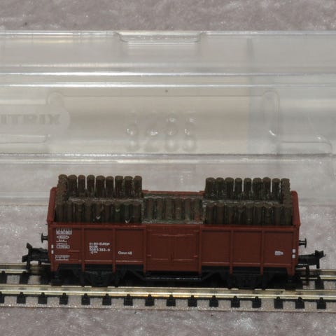 Vognen er brugt. Tidligere ejer har patineret vognen. Der medfølger last i form af kul og tømmer. Leveres i original æske.