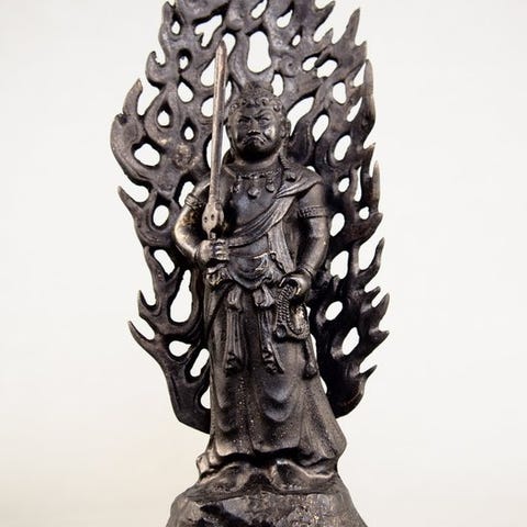 Et fint brunt patineret bronze okimono 置物 skåret i form af gudinden Daikokuten 大黒天, en af Japans ærede ‘Seven Lucky Gods’ 七福神 (Shichifukujin).