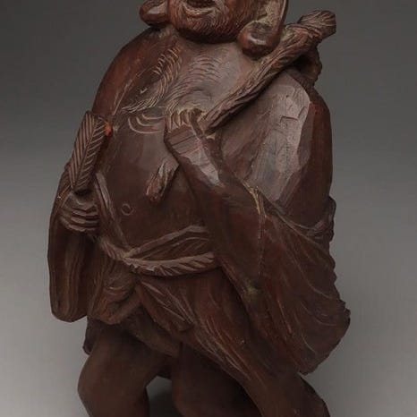 Overfladen langs siderne er udsmykket i lav relieff med en række lykkebringende skatte forbundet med de Syv Lykkelige Guder 七福神 (Shichifukujin), såsom den magiske hammer 打ち出の小槌 (uchide nokozuchi) af Daikokuten 大黒天, stofposen 布袋 (nunobukuro) af Hotei, en fersken af udødelighed fra Jurōjin 寿老人, og nøglen til skattehuset 倉の鍵 (kura no kagi) af Benzaiten 弁才天.