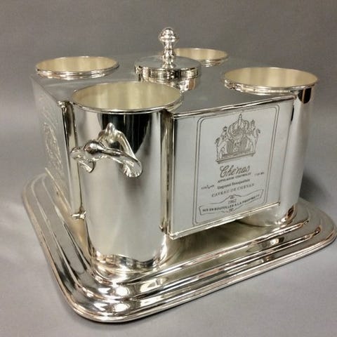 Sølpladet vinkøler til 2 flasker med isbeholder i midten.