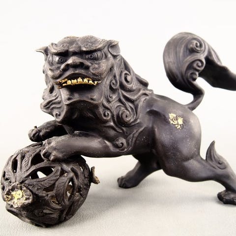 Meiji-periodens bevægelige slange-skulptur (自在蛇置物) støbt i kobber med en jernkerne; kobber ydersiden er bevægelig, men den komplette jernkerne begrænser bevægelsen, ca. 60 cm lang med patina og let slid, en tand mangler og to interne kerne-sektioner brækket, klassificeret som en jizai okimono, generel stand: Fair. Klik på den blå "gå til varen" knap, for at købe eller byde på denne vare. Den samlede pris vil blive vist inden du afgiver dit bud.