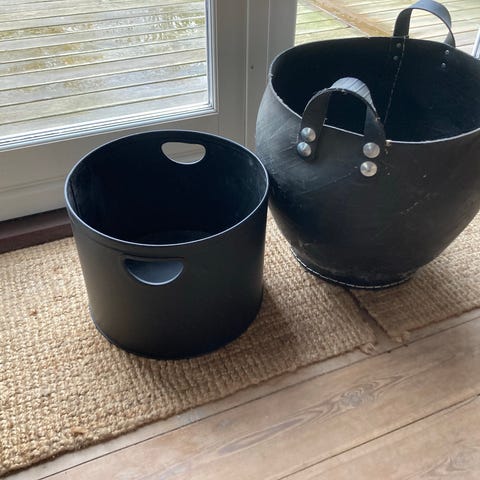 Flot evt brændekurv lavet at flettet bambus. Virkelig robust og intet knækket på den. Med masser af tråd i, derfor meget robust og kan holde til meget. 30 h og 55 i diameter