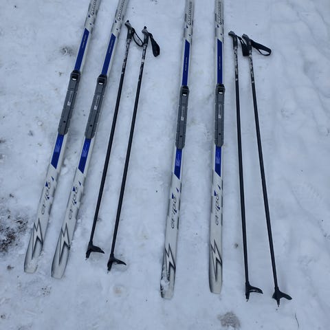 Langrends sæt med skistøvler og stave og ski i god stand brugt meget lidt, kun brugt en uge