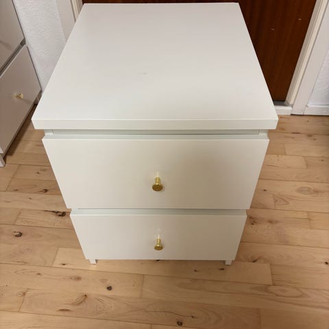 Pris er for begge. Sælger disse to malm sengeborde. Den højre er et par år gamle, Der er nogle skruer som skal strammes, men ellers fejler den intet. Mens den anden er af ældre dato (og har flere brugsspor. Nypris 399kr. Pr stk.
