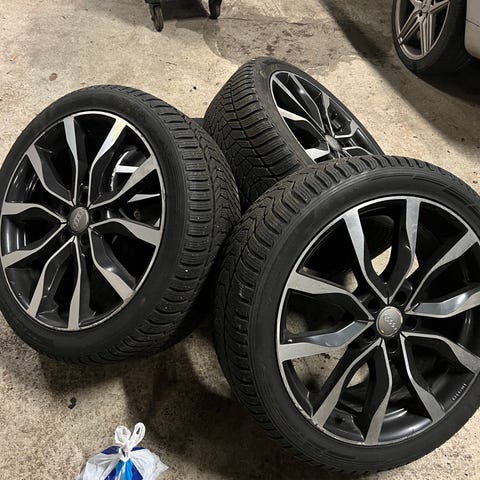 20" alufælge Originale Audi med Contineltal vinterdæk med god mønster. Pæne med meget få brugsspor. Klar til montering med det samme. Passer til A6 og de fleste Modeller m.m. Nypris er over 20000kr. Låsebolte og Ringe til andre centerhul kan medfølge. SMS 28262619