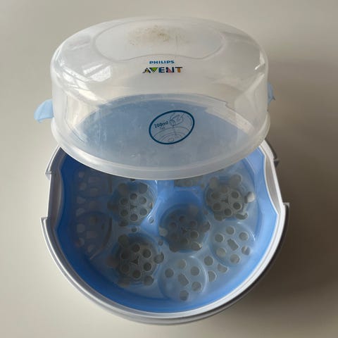 Sterilisator til sutteflaske. Kom den i mikrobølgeovnen med vand i bunden.
