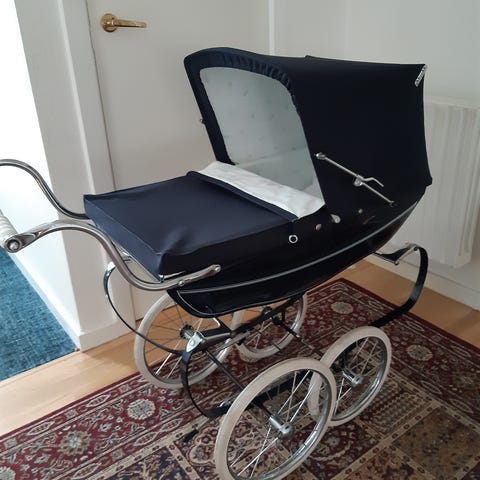 Rigtig fin Silvercross dukkevogn i den klassiske blåfarve.