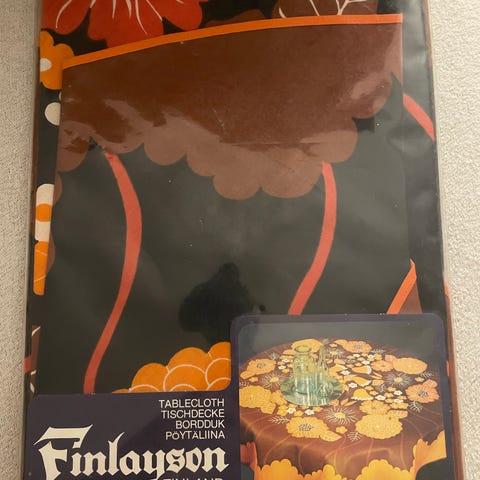 Flot vævet dug i beige, gule og hvide farver. Den måler 130x150. Retro og fremstår som ny. Sender gerne.