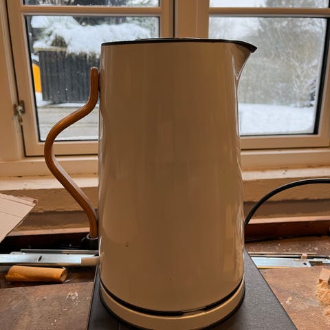 Stelton Elkedel i hvid med sort låg. Kanden har et enkelt design og er lavet af holdbare materialer. Den er velegnet til opbevaring af varme drikke og har en praktisk hank for nem håndtering. Halvanden liter