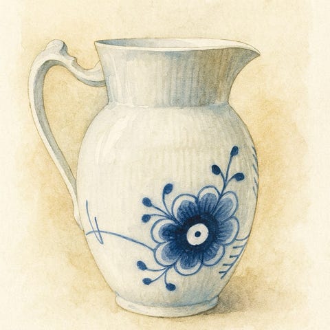 Royal Copenhagen Blue Fluted Mega kande med håndmalet design. Kanden er lavet i porcelæn og har en kapacitet på 1,5 liter. Designet er skabt af Bjørn Wiinblad og fremstillet i Danmark.