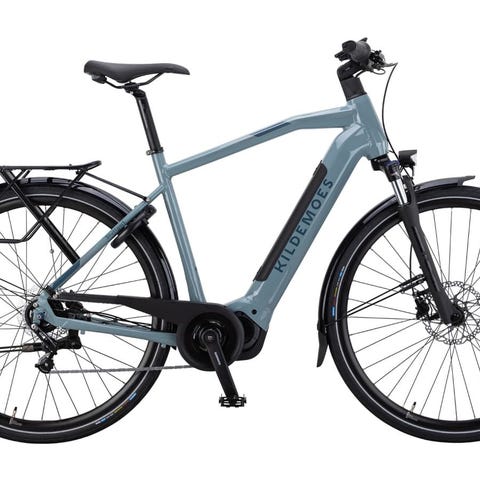 Kildemoes elektrisk cykel. Cyklen har en sort ramme og er udstyret med elektrisk motor for assisteret kørsel. Den har komfortabelt sæde og praktisk bagagebærer. Styret er udformet til en afslappet kørestilling. Egnet til daglig transport og pendling.