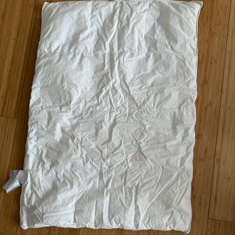 Babydyne med dun, 67 * 100 cm og 90 g fyld (hvide europæiske dun). Nomite og bæreevne 10. Opbevaringspose følger med. Fra røg og dyrefrit hjem. Betaling på MobilePay.