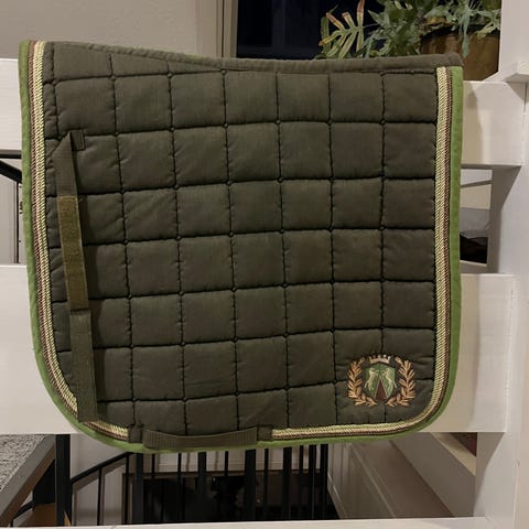 Mattes Full sadelunderlag i sort farve med lammeskindskant. Underlaget er quiltet og designet til full størrelse sadler. Materialet kombinerer tekstil og lammeskind for komfort og beskyttelse. Der er blevet spildt nået på lammeskindet som jeg ikke ved
