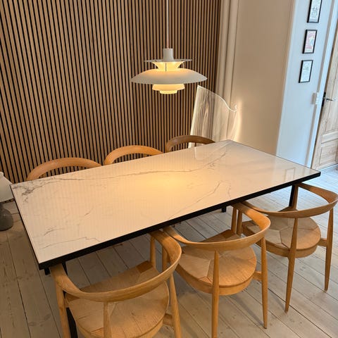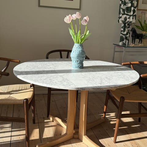 Jeg sælger mit fine marmorbord, som jeg har været glad for, men ikke passer ind i mit nye hjem. Det er brugt meget skånsomt, og i lang tid med dug på. Skriv for billeder af mit eget. Det skal afhentes på Frederiksberg