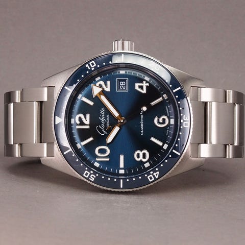 Super flot dykkerur fra Glashütte Original i 39,5mm med sort keramisk bezel, i logoet på låsen kan man let justere lænkens længde. Uret er født med Glashütte’s in-house calibre 39-11 værk med en gangreserve på 42 timer, vandtæthed 200m.