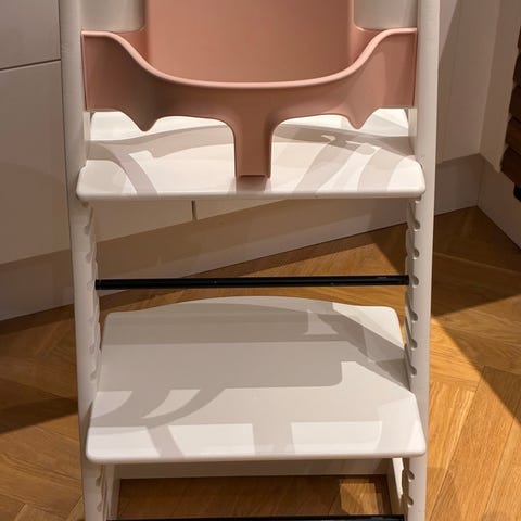 KAOS foldbar højstol med newborn indsats og bakkebord til når baby selv sidder. Inkl. puder.