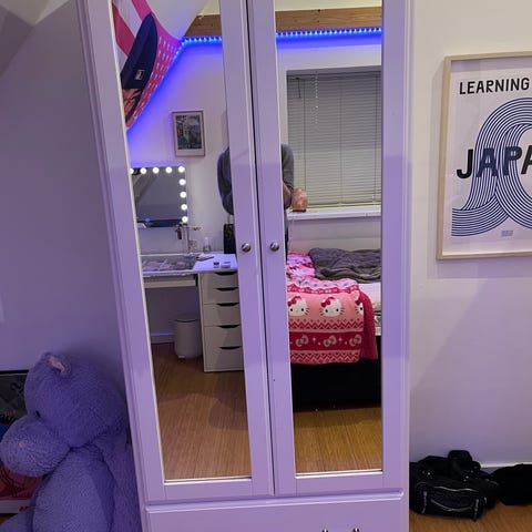 Hvidt garderobeskab med spejlet. Pænt stand, stabilt og funktionelt.