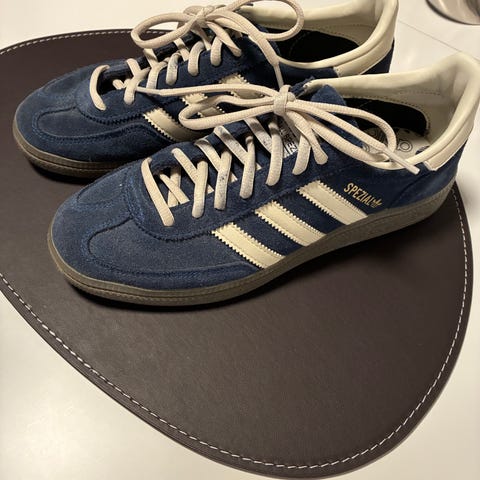 Adidas sneakers i størrelse 40 2/3, grøn farve. Skoene har klassisk design med hvide striber og hvid sål. Materialet er primært ruskind. Medfølger ekstra grønne snørebånd.