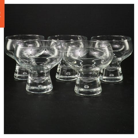 Flot drikkeglas i massivt glas med en stor luftboble i foden – og en silhuet som en: Ballon. Glasset kan bruges til såvel vin som til portionsglas. Det fremstår i flot og hel stand.