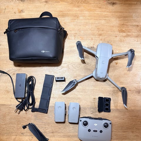 DJI Mavic 2 Pro drone med meget tilbehør inklusive ekstra batterier, opladere, UV filtre, diverse kabler 2 bæretasker.