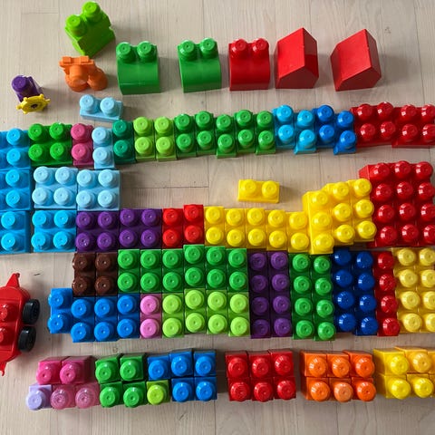 Super fint sæt af byggeklodser og bil dertil. Indeholder 60 stk. klodser.