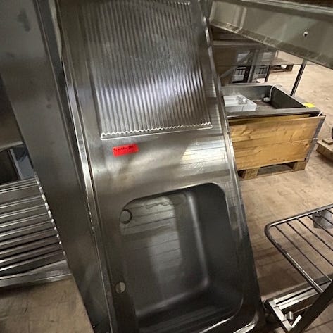 Stålbord med vask og krog til opvask i venstre side brugt – 14 dages garanti. Du kan tilkøbe 12 mdr. for 799 kr.