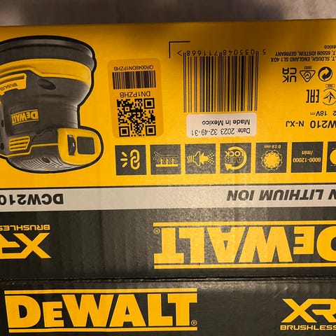 DeWalt DCM210 XR slibemaskine med 18V batteri. Batteridrevet model uden ledning, egnet til slibning og overfladebehandling. Leveres uden tilbehør.