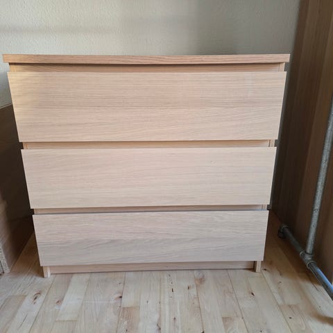 Kommode med fem skuffer i lyst træ