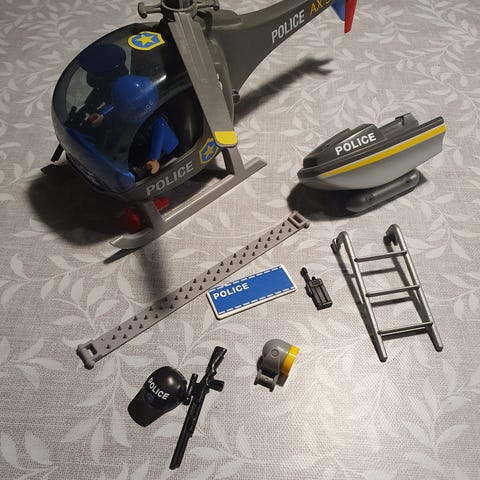 Flot helikopter fra Playmobil med lygte (se billede) og redningskrog.