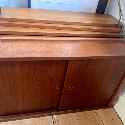 Reol system og kommode. Det er brugt og bærer præg heraf. Men det er fint og funktionelt, måske hvis man er en gør-det-selv type man kan shine det op.