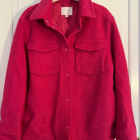 Virkelig flot og velholdt Uldjakke i oversize fra HM. Jakken passer både en medium og en large. Jakken er som ny og kun brugt 1 gang. Nypris 1299,-kr. Kradser ikke selvom den er i uld. Fra hjem uden røg