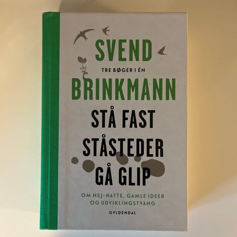 Svend Brinkmann Stå Fast og Gå Glip bøger. To bøger af Svend Brinkmann, der omhandler psykologi, filosofi og personlig udvikling. Bøgerne indeholder emner som værdighed, sandhed, kærlighed, tilgivelse og døden, samt refleksioner over tidens udvikling og moderne livsudfordringer.