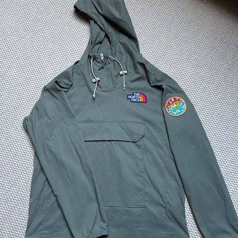 The North Face Gore-Tex jakke i blå farve, størrelse 3XL. Jakken er lavet i Gore-Tex materiale, som er kendt for at være vandtæt og åndbart. Designet til udendørs brug med fokus på beskyttelse mod vejr og vind.