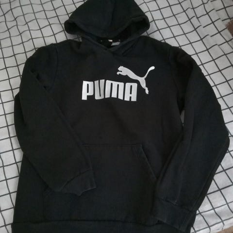 Puma hue i blå farve med pompom på toppen. Unisex design uden specifik størrelseangivelse. Materiale og sportstype er ikke oplyst.
