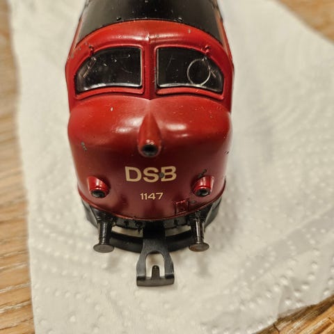 Märklin 3067 - DSB MY 1147 - diesellokomotiv - rød/sort - AC - brugt i pæn stand (den ene pufferplade defekt) - testet og kører fint (springer lidt ved retningsskift) - nye kul isat - skala 1:87 - HO.